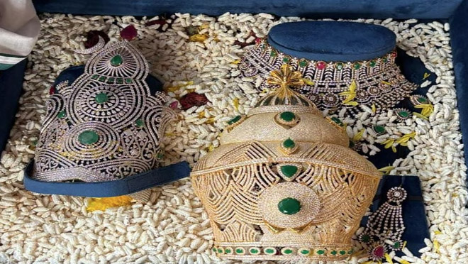 ಆಭರಣ ಅರ್ಪಿಸುವ ಮುನ್ನ ದೇಗುಲದಲ್ಲಿ ಮೆರವಣಿಗೆ ಮಾಡಲಾಯಿತು. ಈ ವೇಳೆ ದೇಗುಲದ ಆಡಳಿತ ಮಂಡಳಿ ಹಾಗೂ ಅರ್ಚಕರು ಭಾಗಿಯಾಗಿದ್ದರು. ಕೋಟ್ಯಂತರ ಮೌಲ್ಯದ ಆಭರಣಗಳನ್ನು ಅರ್ಪಿಸಿ ಇಳೆಯರಾಜ ಅವರು ಭಾವುಕರಾಗಿದ್ದರು.