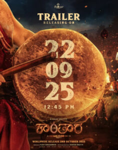ಬಹು ನಿರೀಕ್ಷಿತ ಚಿತ್ರ ಕಾಂತಾರ ಚಾಪ್ಟರ್ 1 ಟ್ರೈಲರ್ ಸೆಪ್ಟಂಬರ್ 22 ಕ್ಕೆ ಬಿಡುಗಡೆಯಾಗಲಿದೆ.