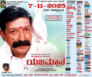 ಡಾ. ವಿಷ್ಣುವರ್ಧನ್ ಹಾಗೂ ಪ್ರೇಮಾ ಅಭಿನಯದ ಸೂಪರ್ ಹಿಟ್ ಚಿತ್ರ ‘ಯಜಮಾನ’ 25 ವರ್ಷಗಳ ನಂತರ ಆಧುನಿಕ ತಂತ್ರಜ್ಞಾನದೊಂದಿಗೆ ನ.7ಕ್ಕೆ ರಾಜ್ಯಾದ್ಯಂತ ಮರು ಬಿಡುಗಡೆಗೆ ಸಜ್ಜಾಗಿದೆ.